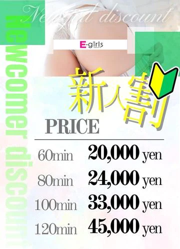 2026/03/06有効期限: 2026/02/03(火)~2026/03/31(火) 13% OFF!! 画面のご提示で 60 分 21000 円 【利用条件】 🔰 新人限定割引 🔰 入店日より2ヶ月間の特別割引 🔰 新人割引料金 🔰 コース料金 60分 20,000円 80分 24,000円 100分 33,000円 120分 45,000円 指名料 1,000円 🔰 Preciousコース対応キャスト限定 🔰 Preciousコース 7,000円 注意事項 ※本指名様のご利用不可。 ※ご予約限定の割引となります。 ※新人期間中の女の子のみの割引となります。 ※土日祝日は+1000円となります。 通常クーポン利用時 合計 60 分 24000円 60 分 21000円 指名料 1000円 1000円 画面のご提示で 60 分 23000円 60 分 20000円